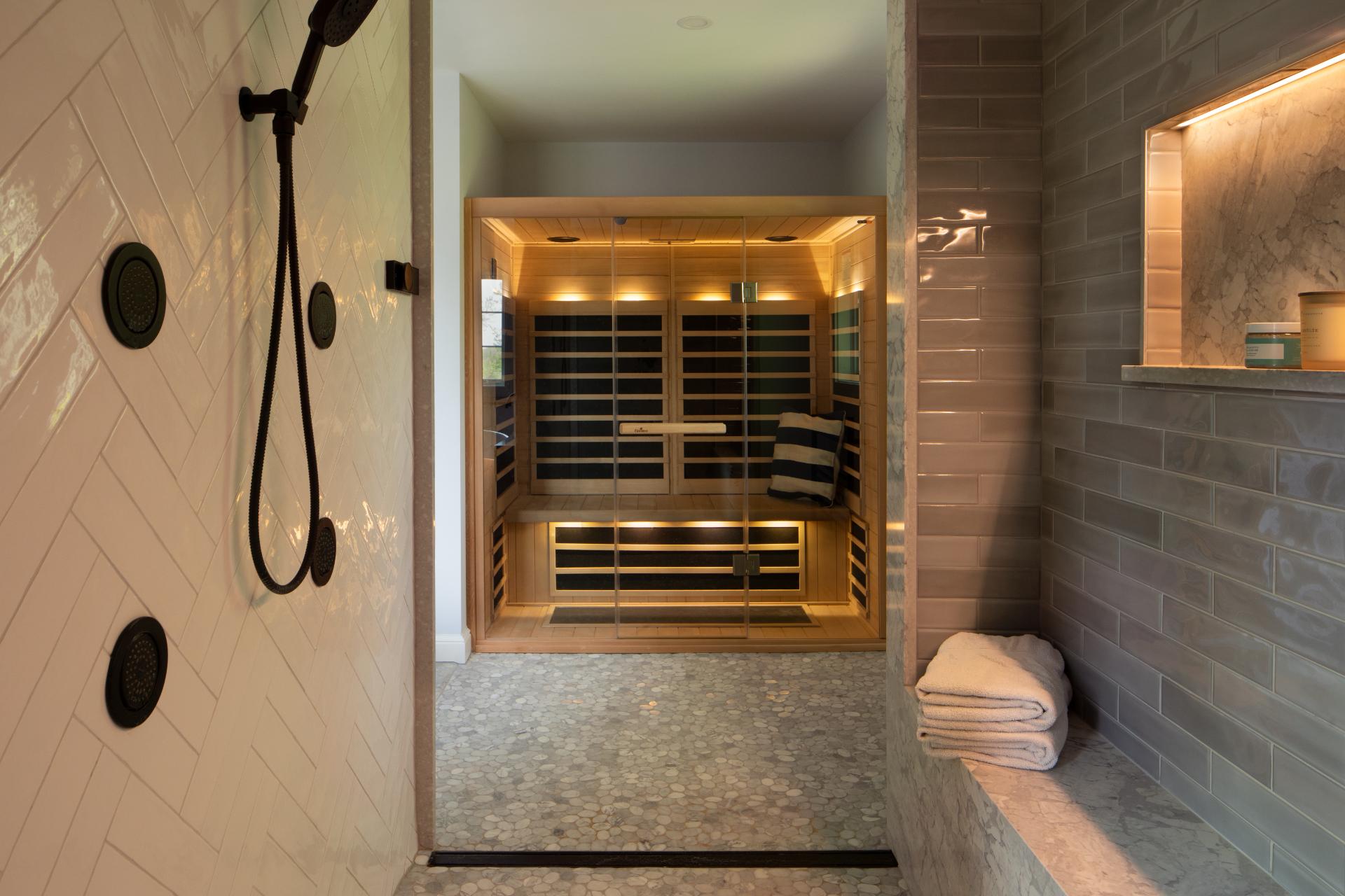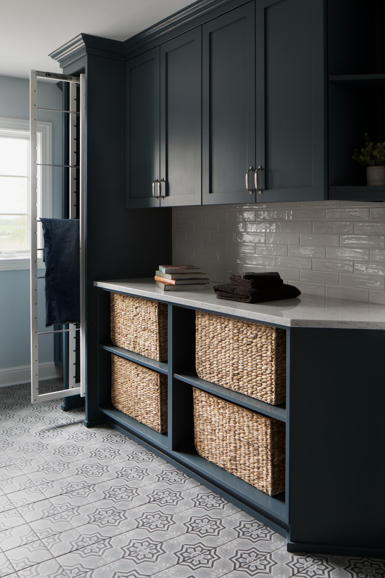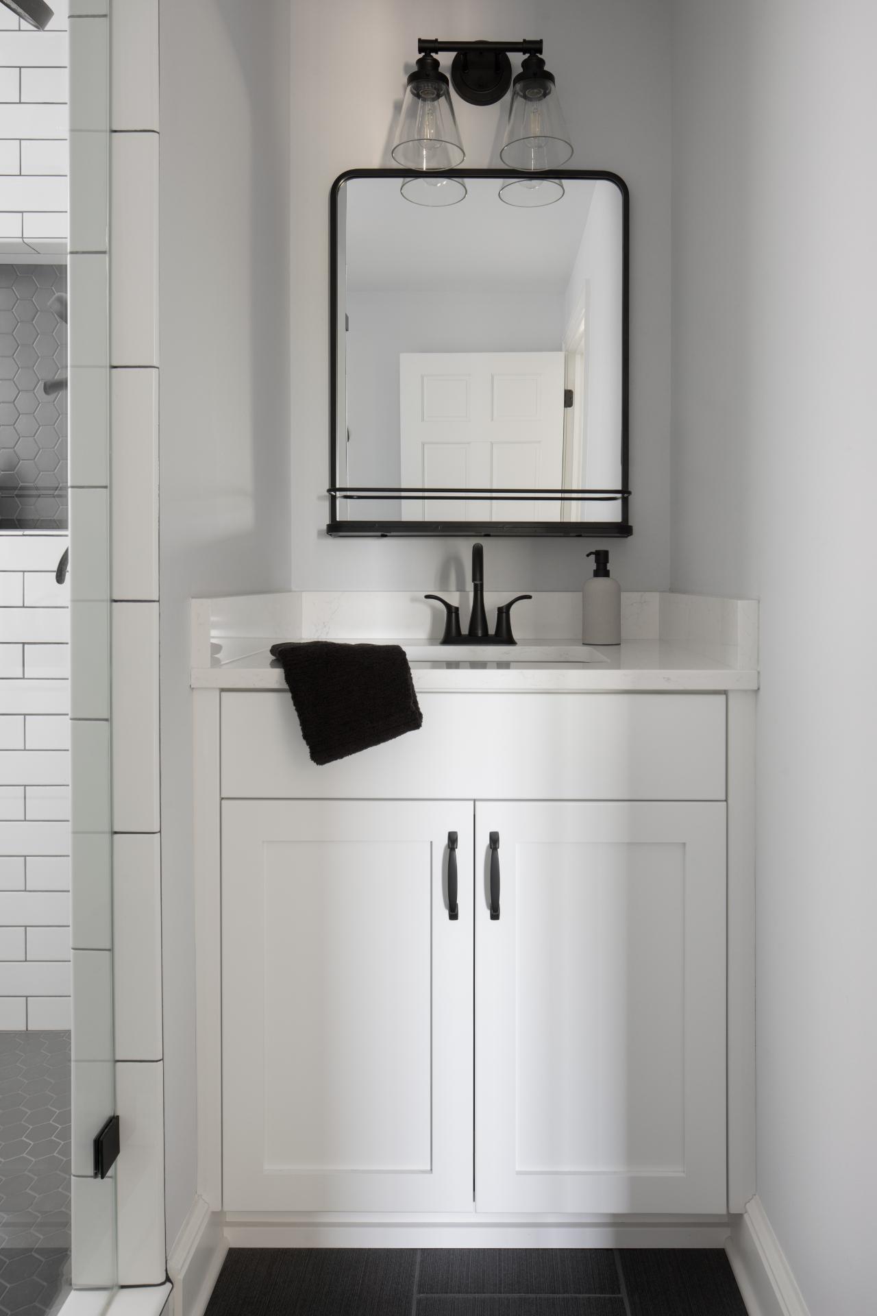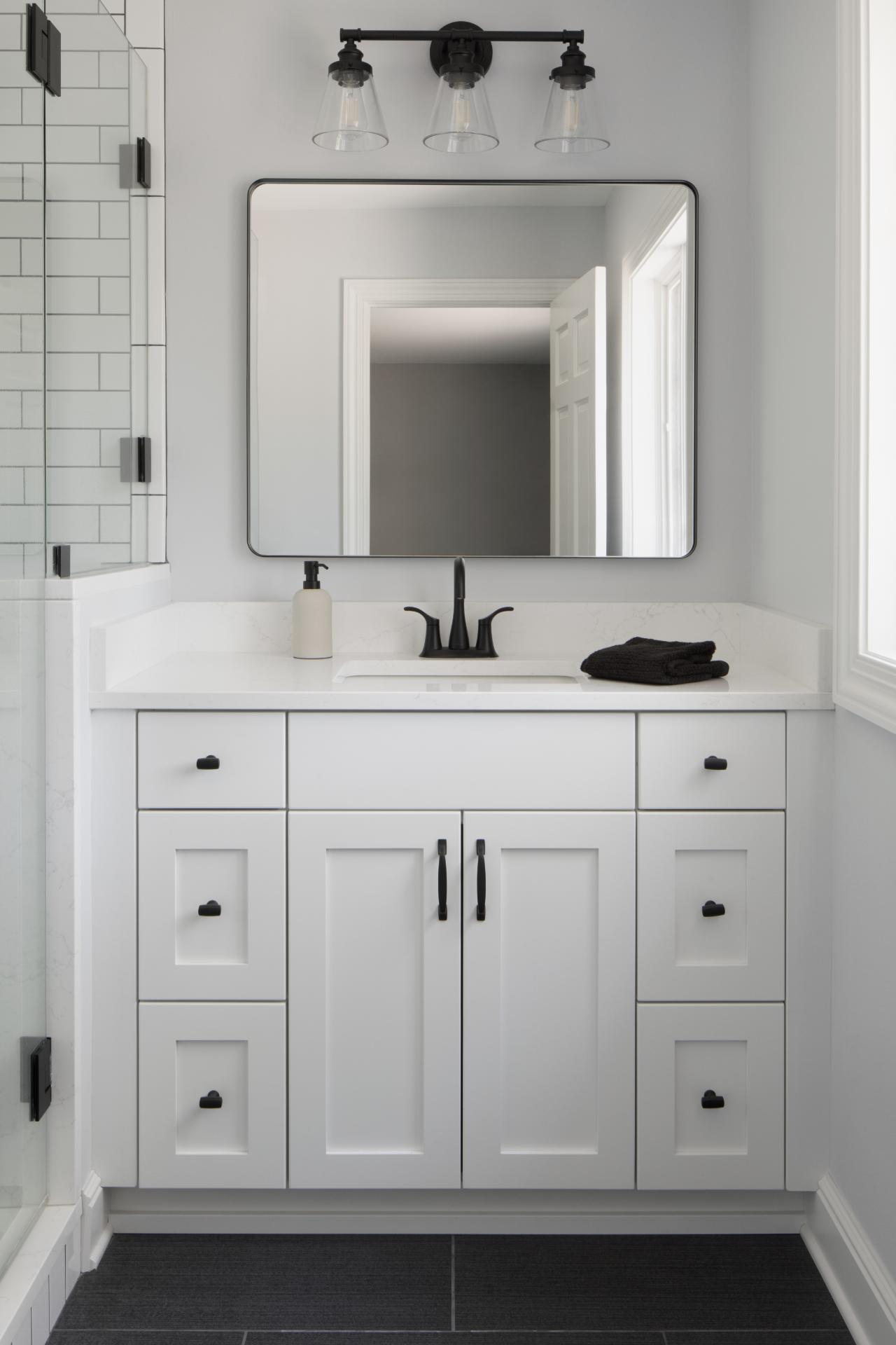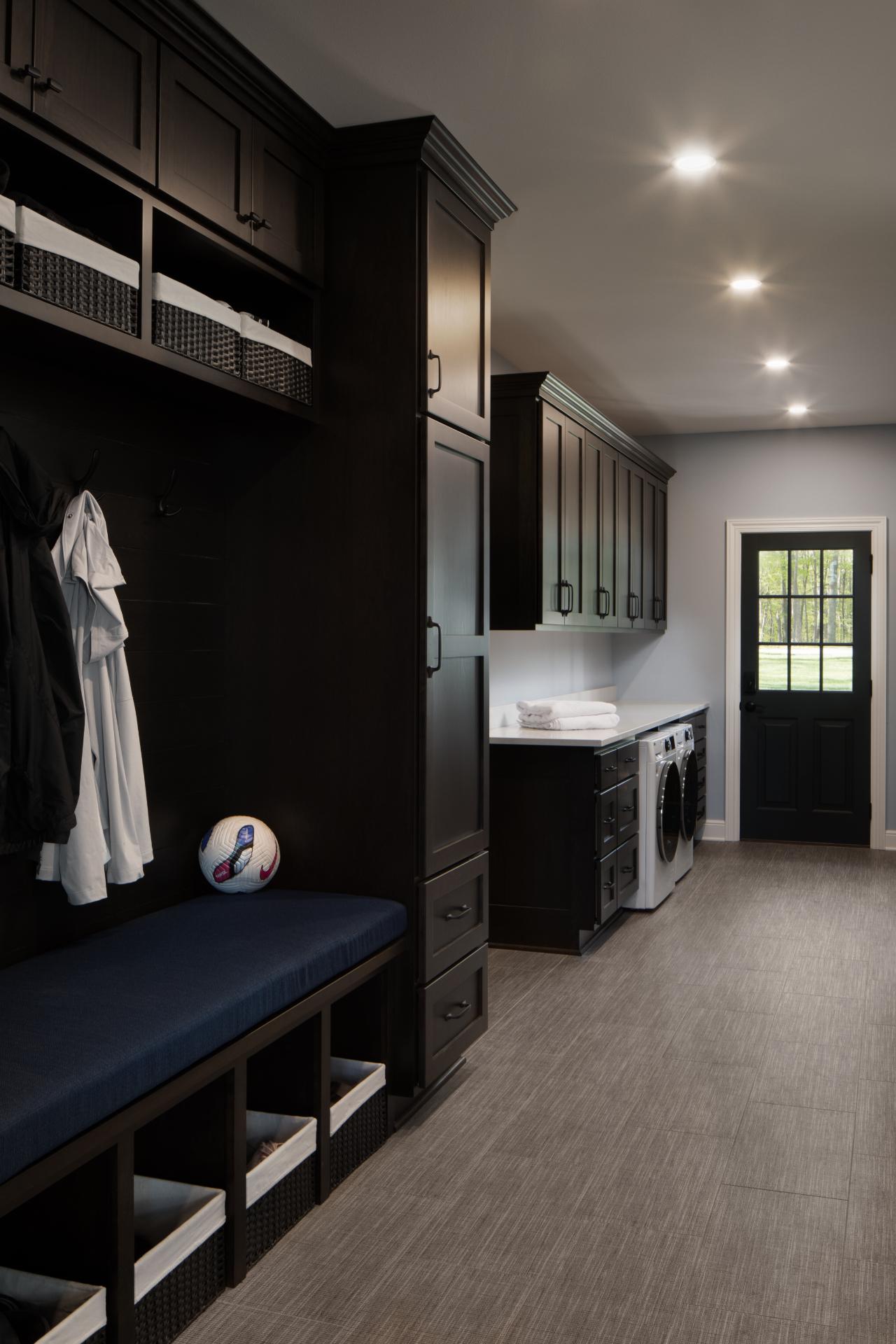 We reworked nearly every inch of this first floor to turn a dated layout into a warm, functional space for family living and entertaining. In the kitchen, coffered ceilings, arched openings, and layered finishes create a sense of timeless character, while natural light and custom cabinetry keep things fresh and inviting. The new mudroom, butler’s pantry, sunroom, powder room, and living room were all thoughtfully updated to feel cohesive yet distinct, with details like brick accents, bold cabinetry, and modern lighting pulling everything together.