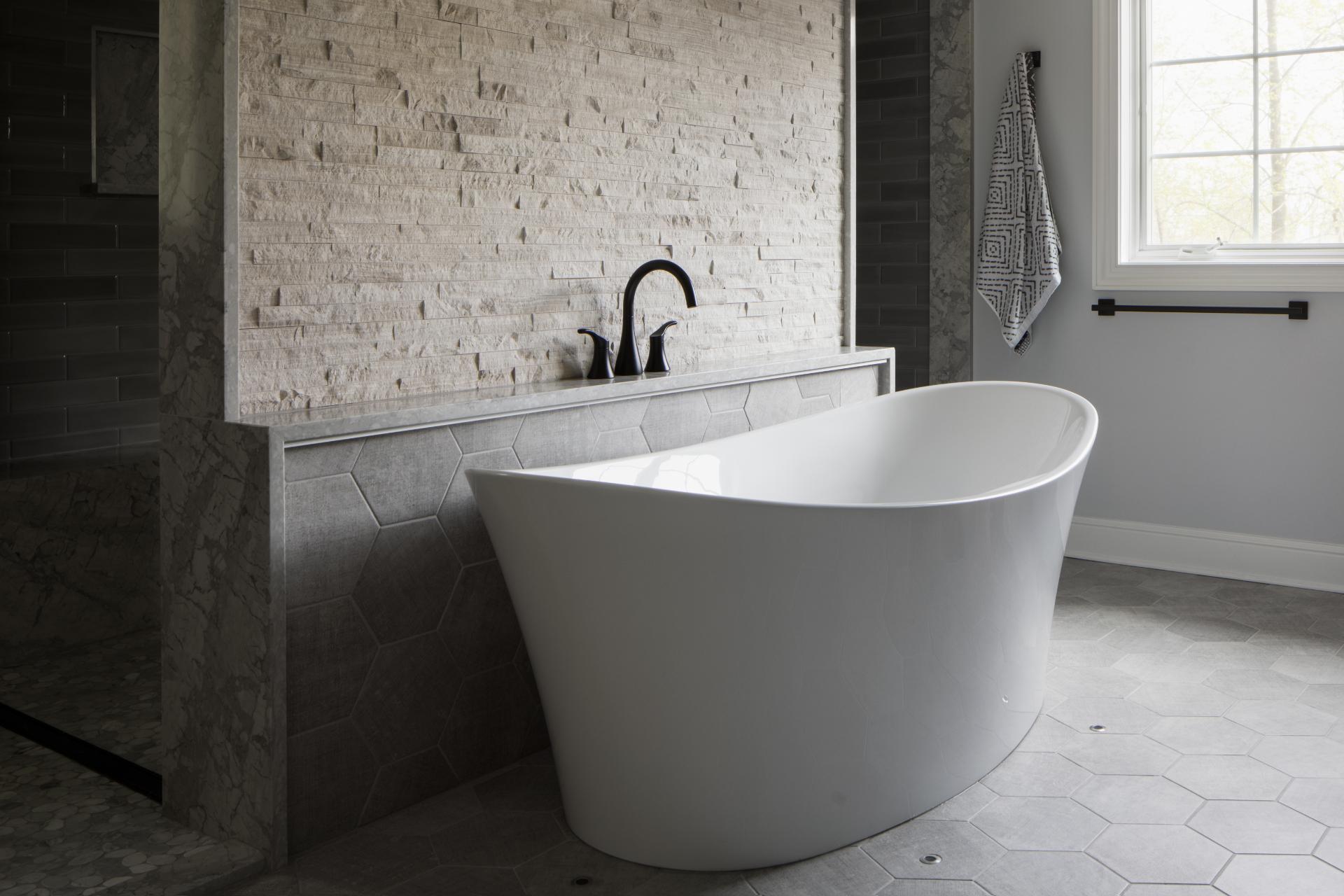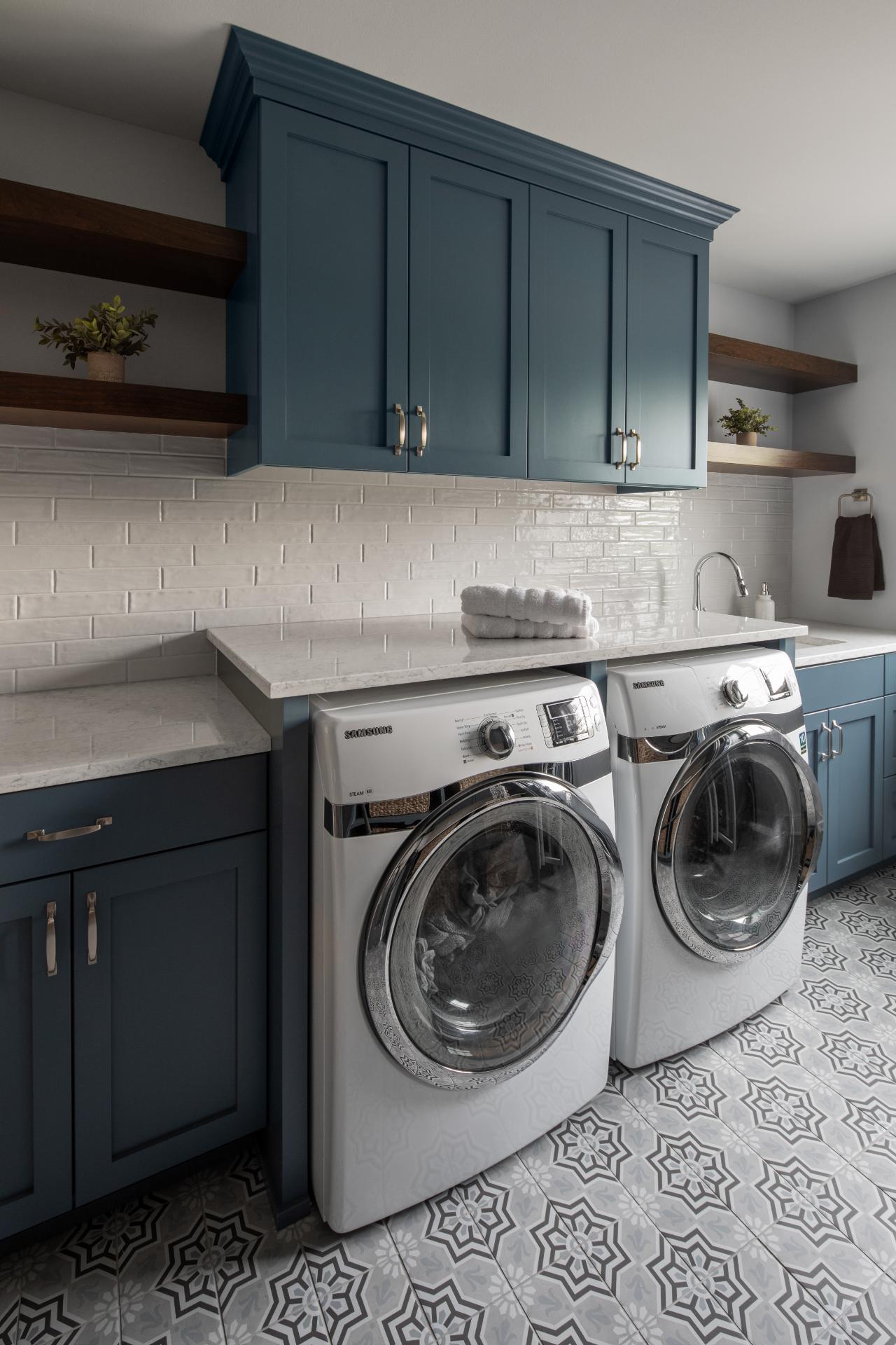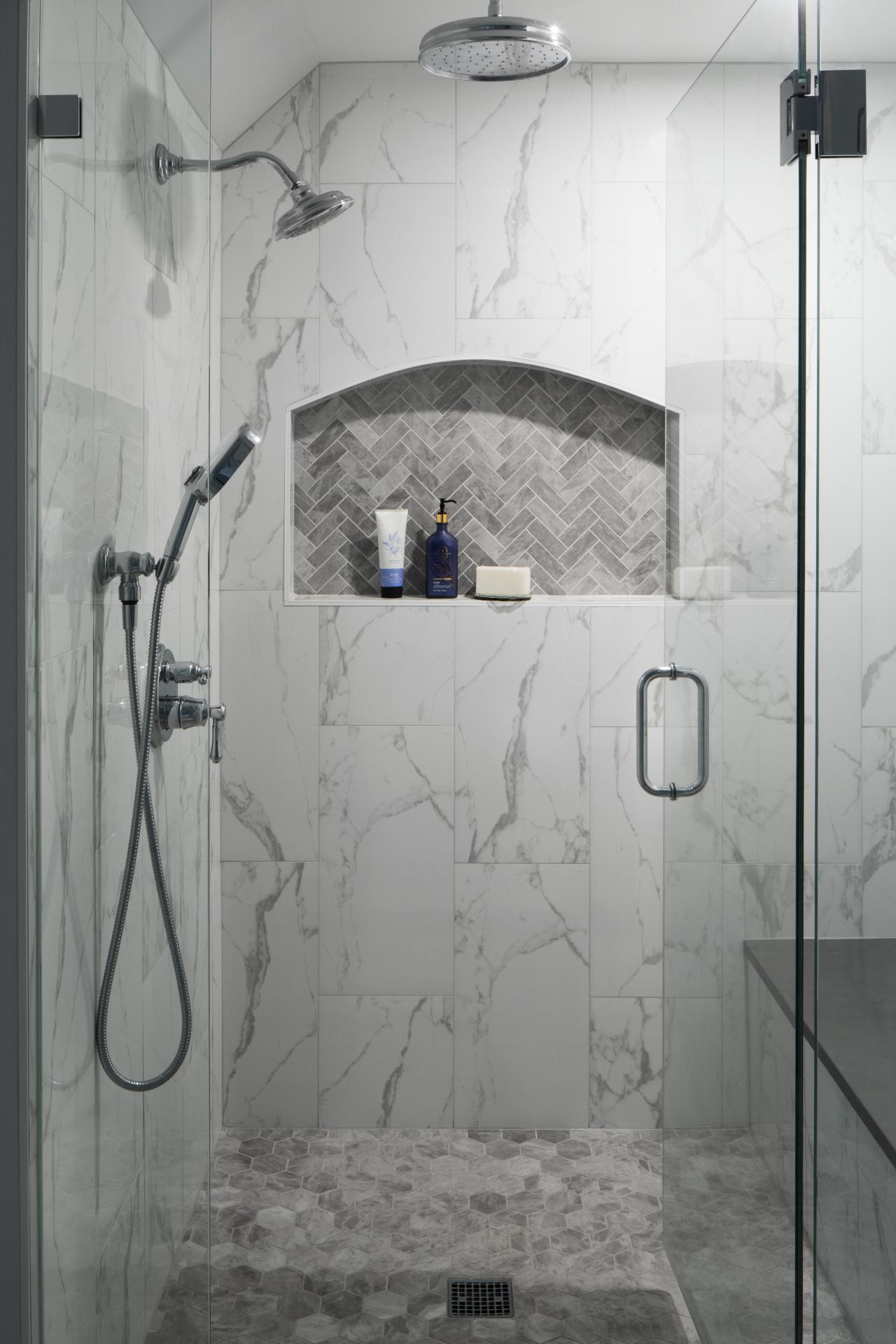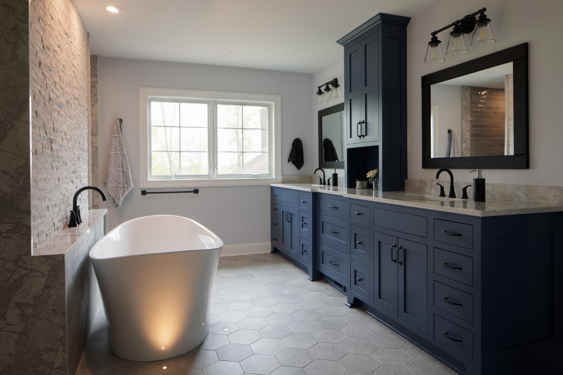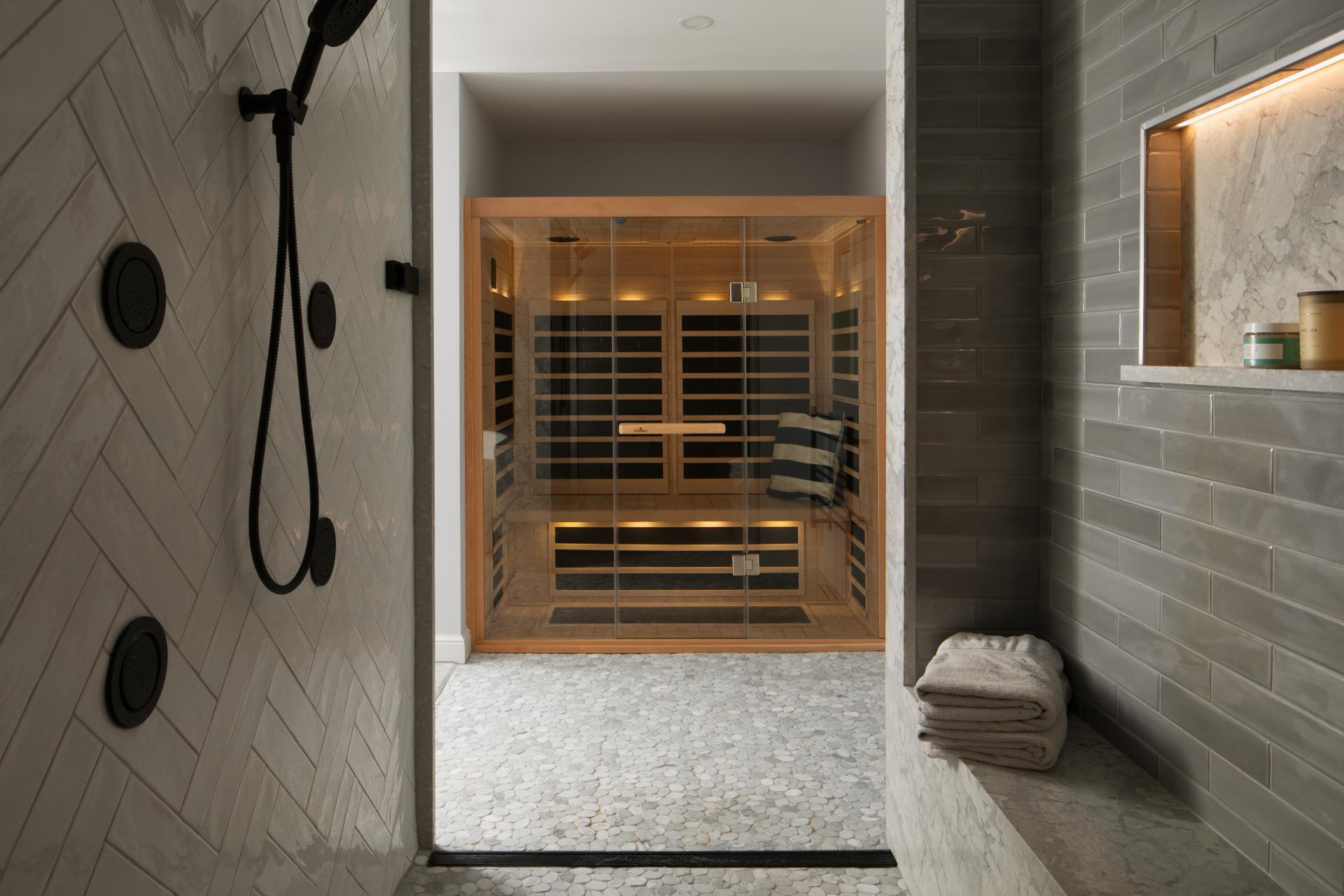 We reworked nearly every inch of this first floor to turn a dated layout into a warm, functional space for family living and entertaining. In the kitchen, coffered ceilings, arched openings, and layered finishes create a sense of timeless character, while natural light and custom cabinetry keep things fresh and inviting. The new mudroom, butler’s pantry, sunroom, powder room, and living room were all thoughtfully updated to feel cohesive yet distinct, with details like brick accents, bold cabinetry, and modern lighting pulling everything together.